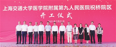 本报讯 (通讯员 九 轩 摄影 奚荣佩)7月21日上午,2021年度第三批市、区重大工程集中开工仪式在上海交通大学医学院附属第九人民医院祝桥院区项目现场举行。市、区领导以及相关部委负责人,上海交通大学医学院、申康医院发展中心领导,开工项目企业代表出席。九院党委书记郭莲、院长吴皓率党政领导班子及相关职能部门负责人参加开工仪式。