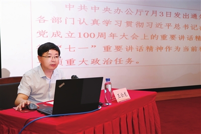王公龙教授作题为《引领中华民族走向伟大复兴的光辉宣言——深入学习习近平总书记在庆祝建党100周年大会上的重要讲话精神》专题辅导报告,深刻解析了“七一”重要讲话的发表背景及重大意义,从主题主线和创新亮点深度阐释了“七一”重要讲话的丰富内涵、核心要义和实践要求,提出了深入学习贯彻“七一”重要讲话精神的指导性意见和建议。