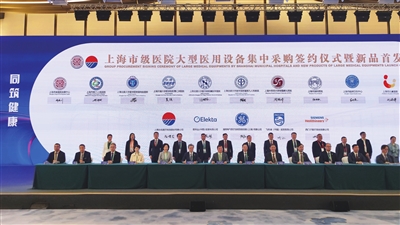 本报讯(通讯员 盛红斌)作为第七届中国国际进口博览会上海交易团的重要配套现场活动之一 “上海市级医院大型医用设备集中采购签约仪式暨新品首发式”于11月8日上午在国家会展中心举行。我院党委副书记、纪委书记张峻,副院长徐袁瑾、总会计师郭瑞、资产管理处处长任晓敏等参加了现场签约仪式。申康中心和市级医院代表与跨国医疗器械厂商及外贸代理机构代表共同签署了大型医用设备集中采购协议书。徐袁瑾副院长代表医院签字。